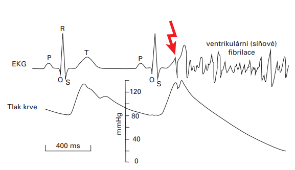 Záznam průběhu EKG lidského srdce při zasažení elektrickým proudem