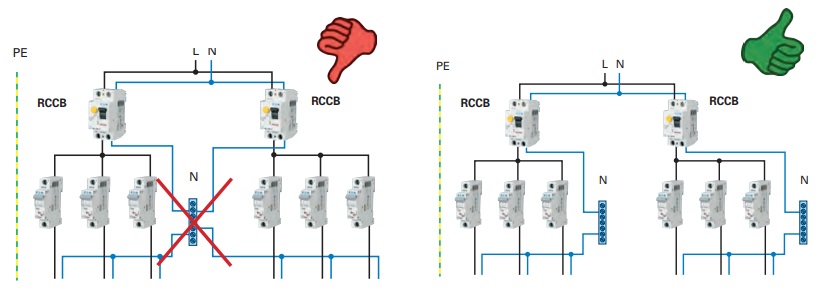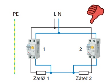 Příklady nesprávného zapojení proudového chrániče a správné zapojení