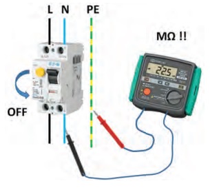 Kontrola oddělení PE a N vodičů za vypnutým proudovým chráničem